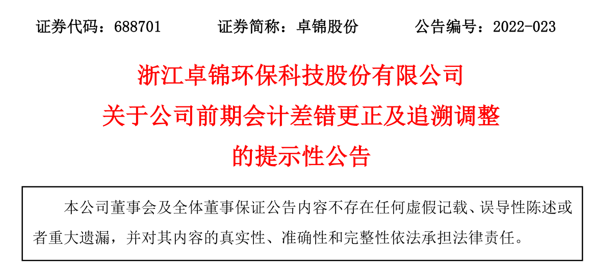 關于公司前期會計差錯更正及追溯調整的提示性公告