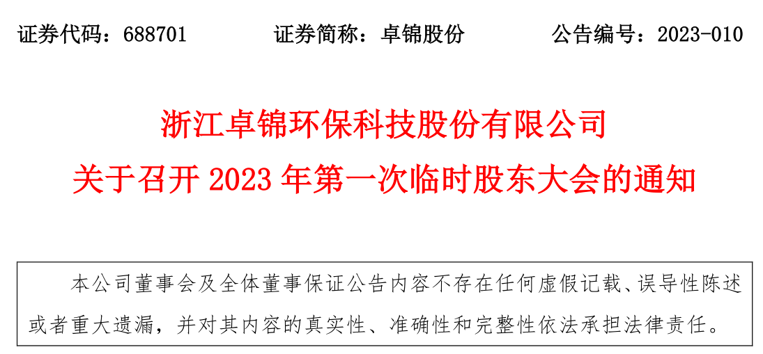 關于召開2023年第一次臨時股東大會的通知
