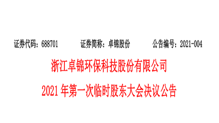2021年第一次臨時股東大會決議公告