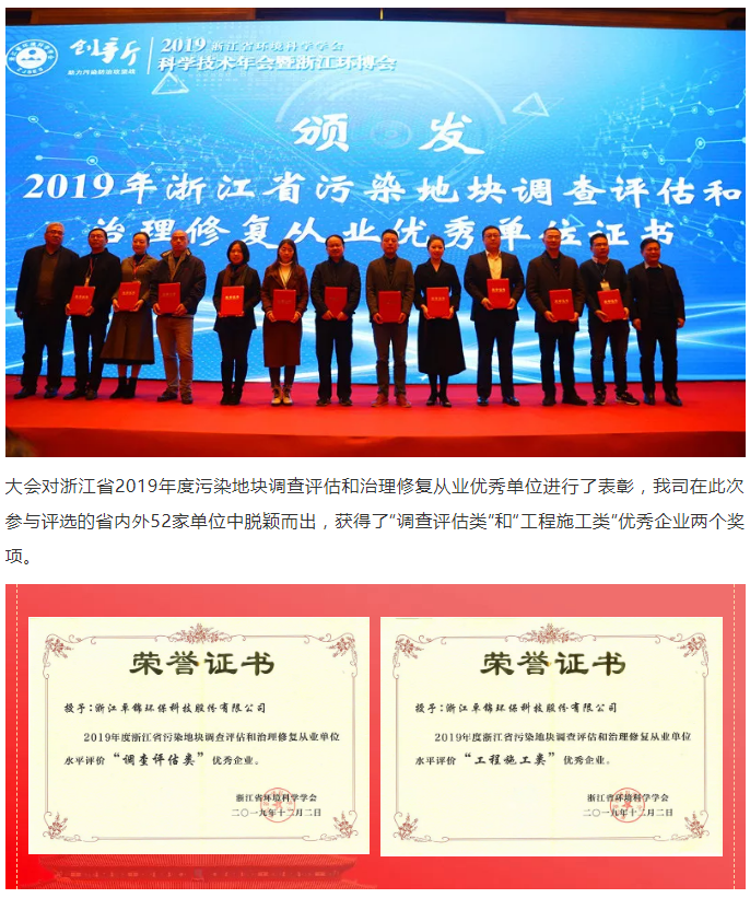 卓錦環保榮獲“調查評估類”和“工程施工類”優秀企業榮譽稱號