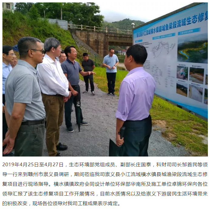 生態環境部副部長莊國泰一行蒞臨贛州崇義縣小江流域橫水鎮縣城漁梁段流域生態修復項目指導