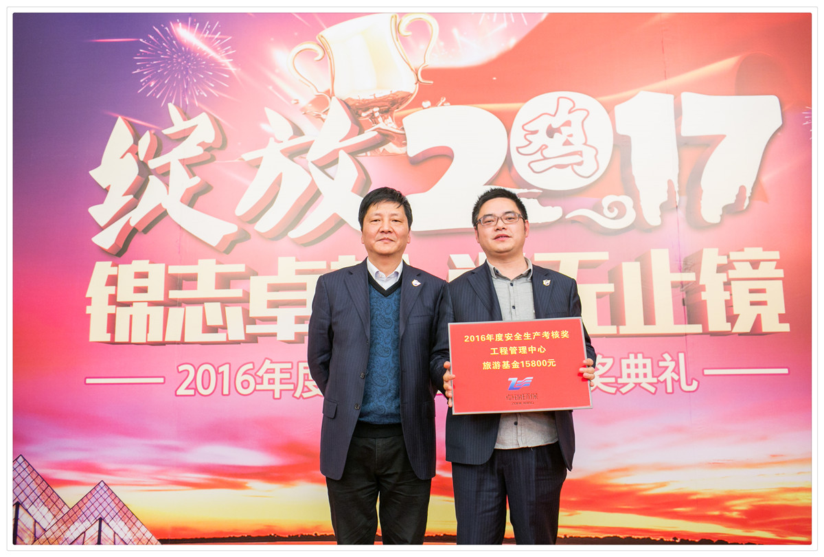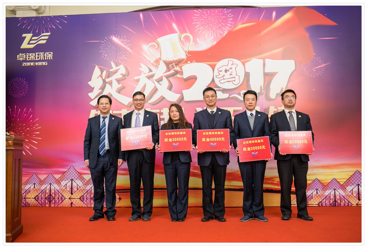 年會的最后由浙江卓錦環保科技股份有限公司董事長卓未龍先生對2016年取得的各項成績進行盤點,肯定了全體員工的共同努力。卓總指出,2016年是卓錦環保制定大戰略、大發展“三年規劃”的開局之年,也是挑戰與機遇并存的一年,在公司董事會和管理團隊的領導下牢牢把握了穩重求進的工作總基調,合力奮進,兢兢業業,簽約合同項目金額再創歷史新高,圓滿完成了既定目標, 順利實現了公司三年規劃的開門紅。同時,卓總還明確了公司2017年經營的總體規劃和目標。全體員工同心協力,再接再勵,圓滿完成公司2017年各項公司目標。