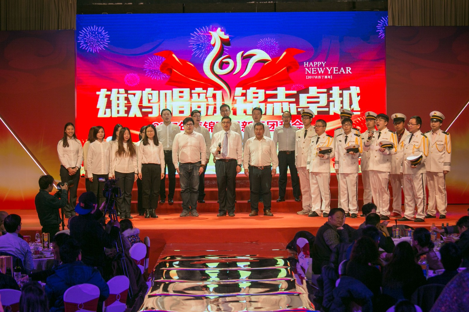 隨著2016年度工作會議圓滿落幕,22日晚,以“雄雞唱韻 錦志卓越”為主題的2017年新春團拜會在金色大廳拉開帷幕,卓錦環保的全體員工及家屬、嘉賓朋友等近200人出席了本次盛會。