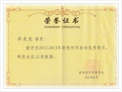 2014年2月8日至2月13日,杭州市政協(xié)十屆三次會議召開,我公司董事長卓未龍先生參加全會,帶去了“關(guān)于加大政策扶持力度促進(jìn)關(guān)停企業(yè)轉(zhuǎn)型發(fā)展的建議”、“關(guān)于提高我市應(yīng)對水源地突發(fā)性污染事件能力的建議”兩篇提案,并被評政協(xié)杭州市委員會評為2012-2013年度杭州市政協(xié)優(yōu)秀委員。