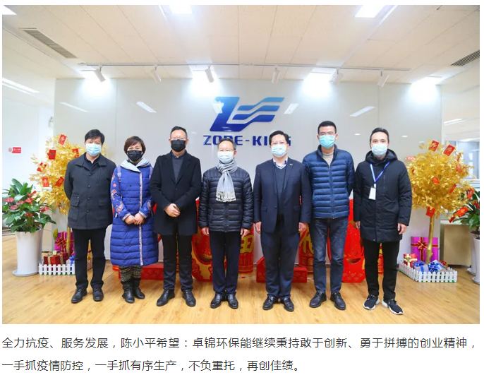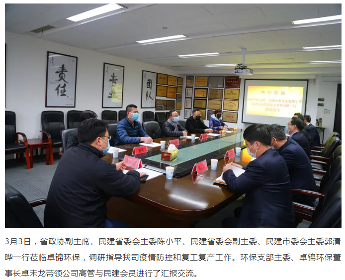 致力抗疫 服務發展——省政協副主席、民建省委會主委陳小平、民建省委會副主委、民建市委會主委郭清曄一行走訪調研卓錦環保