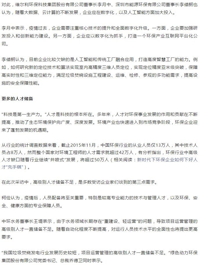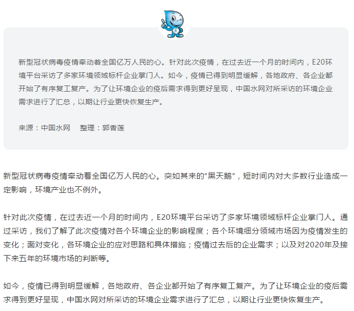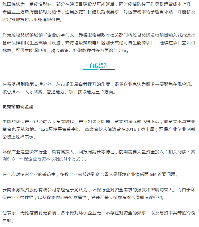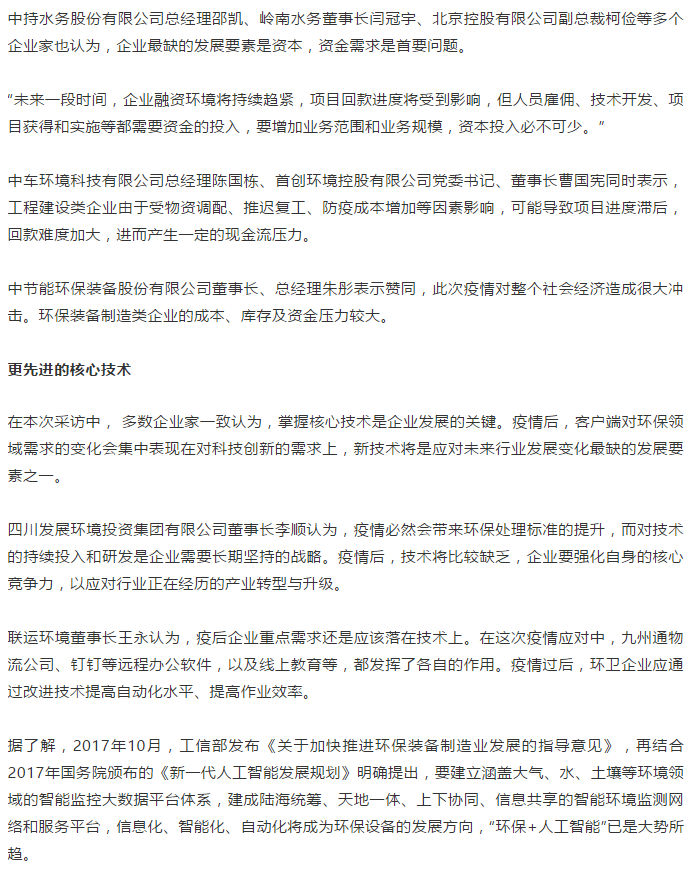疫情過后,環(huán)境產(chǎn)業(yè)亟待解決的六大需求