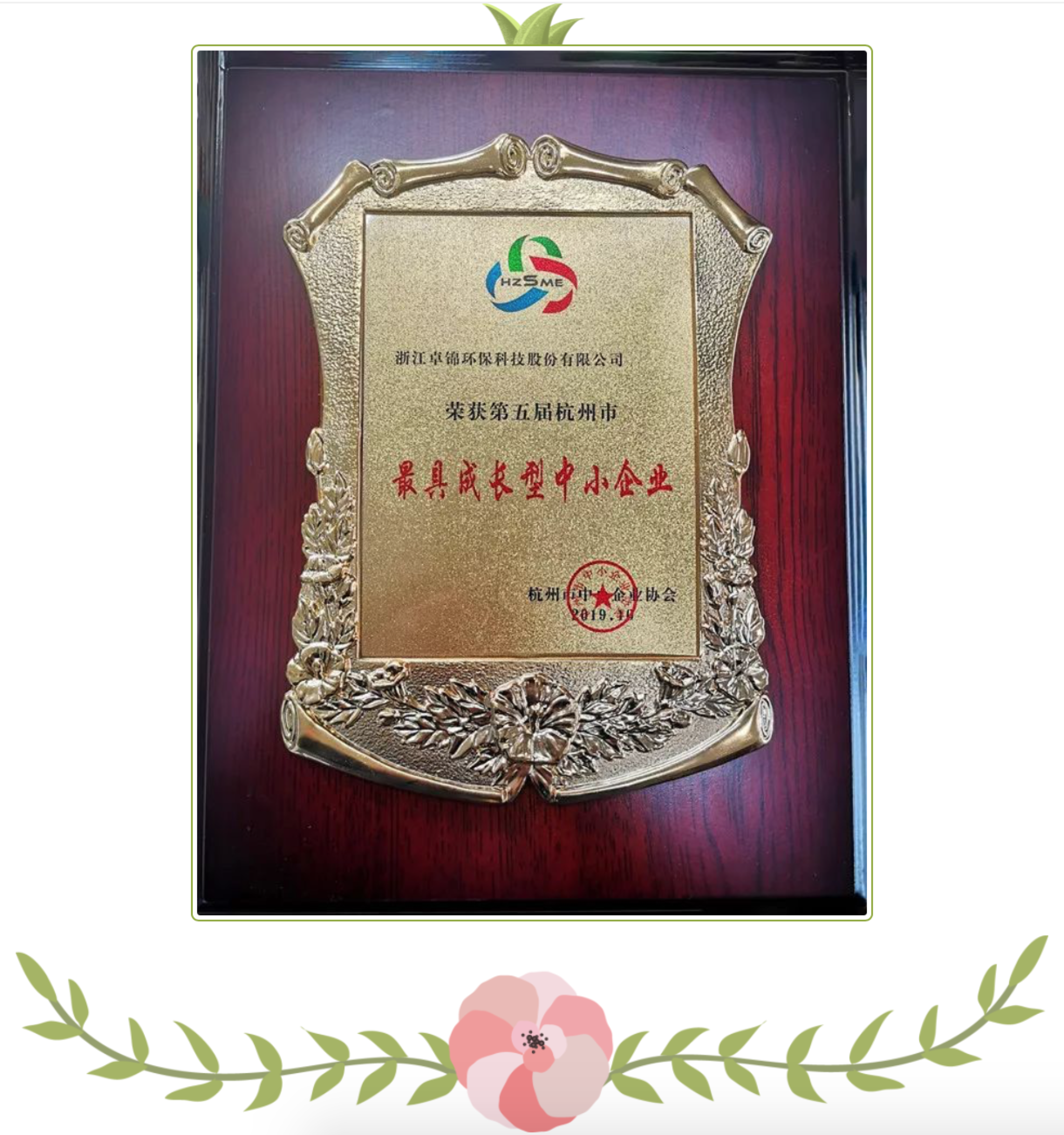 榮譽丨卓錦環保榮獲“杭州市最具成長型中小企”稱號