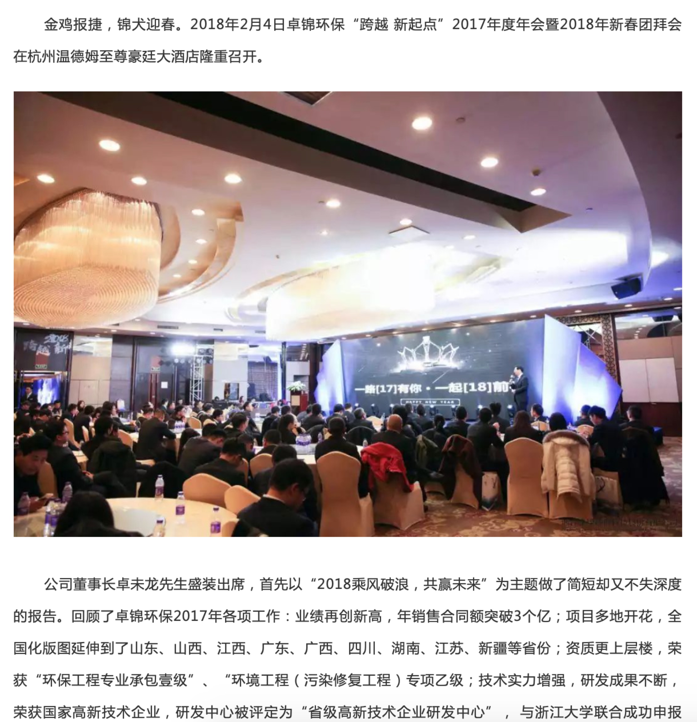 卓錦環(huán)保“跨越 新起點(diǎn)”2017年度年會暨2018年新春團(tuán)拜會”盛況新鮮出爐