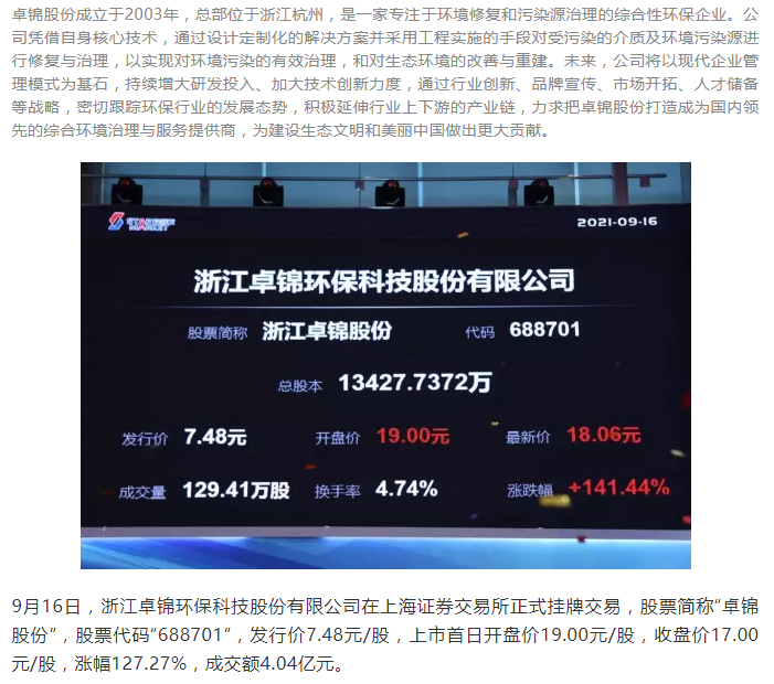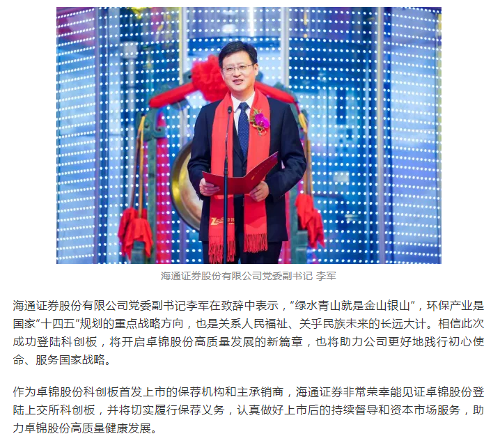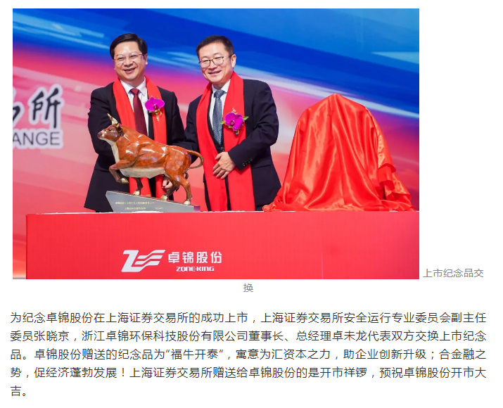 致力于環(huán)境保護(hù)、惠及人類社會,卓錦股份成功登陸上交所科創(chuàng)板