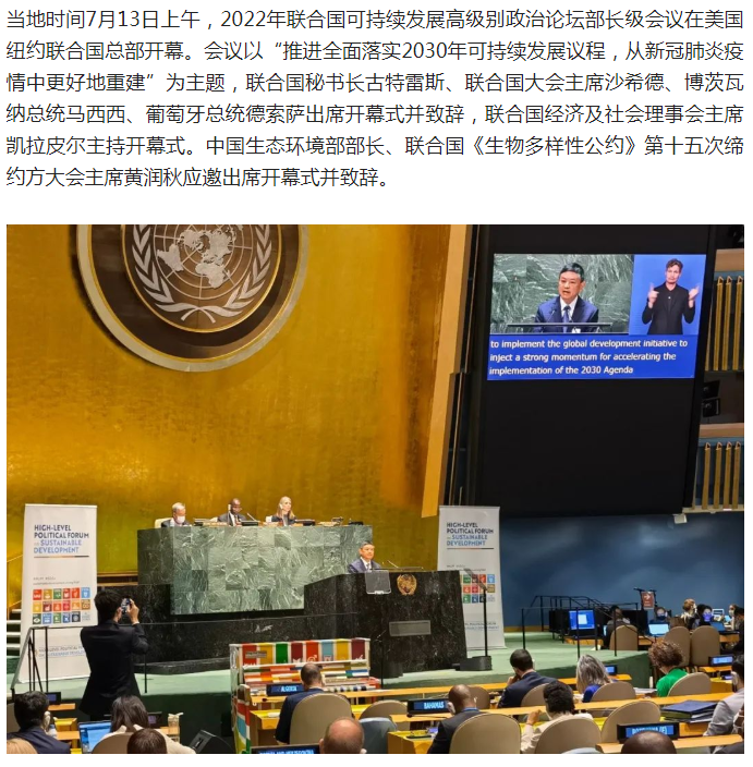 生態環境部部長黃潤秋出席2022年聯合國可持續發展高級別政治論壇部長級會議開幕式